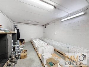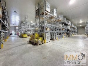 Dimension de l’entrepôt : largeur de +/- 38m, longueur de +/- 32m.